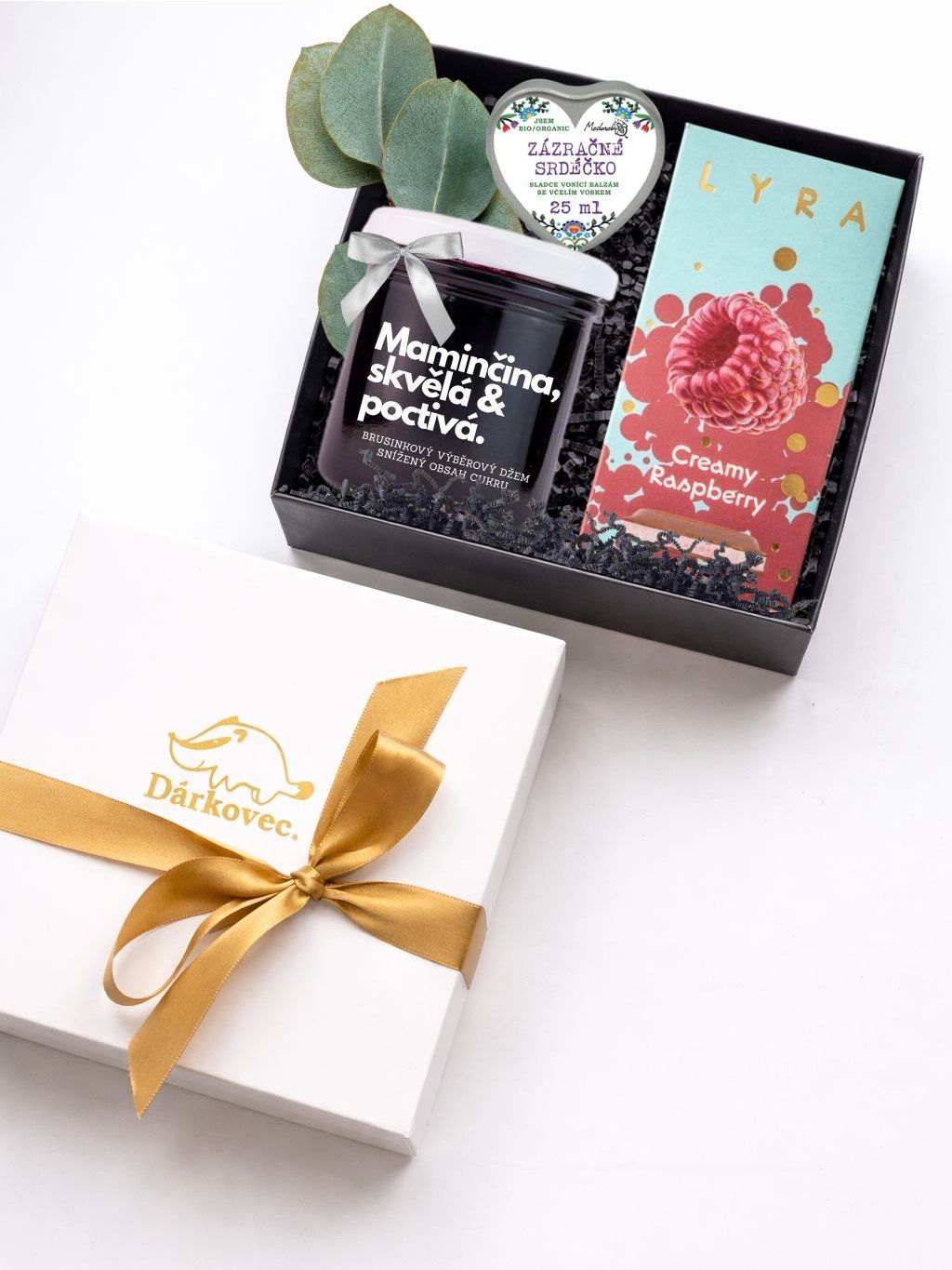 Voňavý dárkový balíček po brusinkách a malinách v čokoládě. Krásný letní dárek pro ženy. Ať už k narozeninám nebo jen jako pozornost pro radost. Brusinkový džem, čokoládovou tabulku s krémem ze šťavnatých malin doplňuje skvěle zázračný balzám na rty od české rodinné firmy. Balzám je opravdu zázračný. Zahojí každou drobnou ranku.